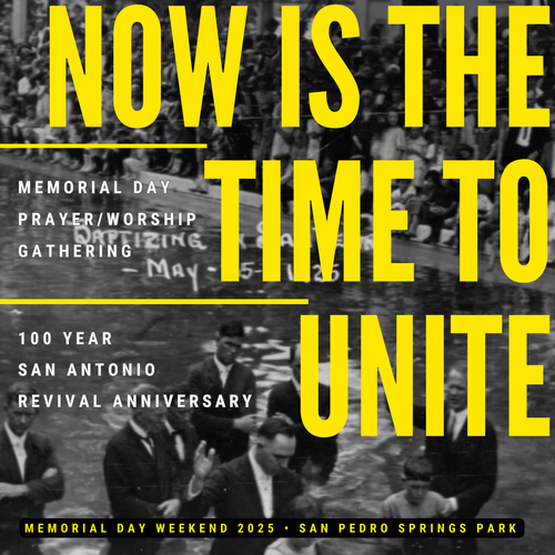 This fund is designed to fuel a modern-day call for kingdom unity and to catalyze an awakening of the Body of Christ through the “Let Us Unite” Memorial Day event, May 24-26, 2025, celebrating the 100-year anniversary of a revival that swept through San Antonio from San Pedro Springs Park.
